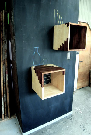 重ねたり、並べたり、壁掛けシェルフにしたりと、いろんな楽しみ方ができる家具です。